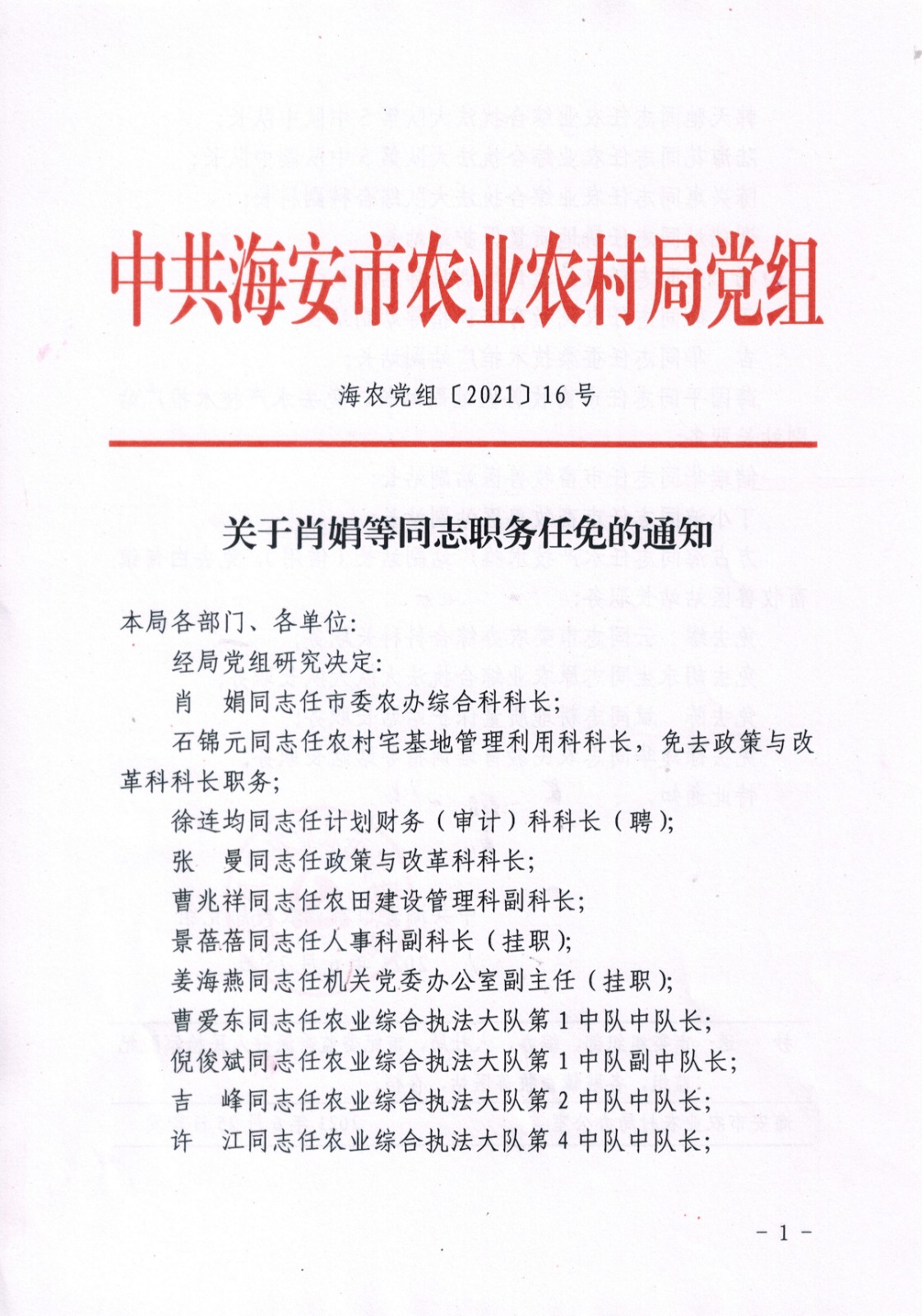 | 名称: | 关于肖娟等同志职务任免的通知 | ||||